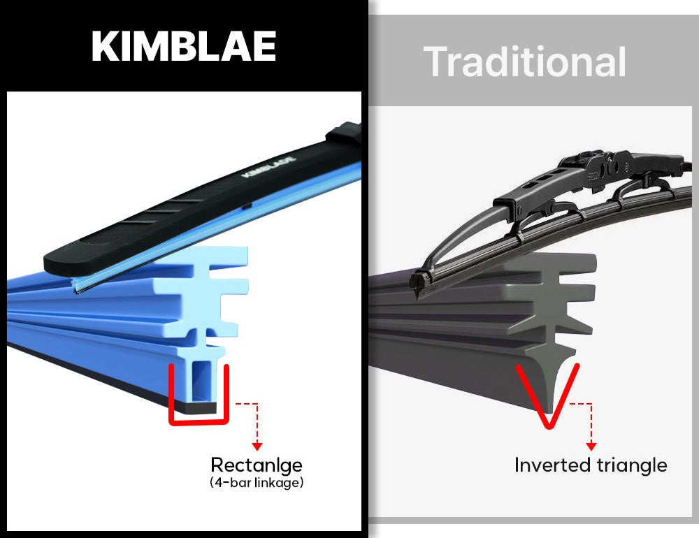 100年以上もの間変わることがなかったワイパーゴムのデザインに、KIMBLADEの四角形のワイパーゴムは革命を起こしたのです。