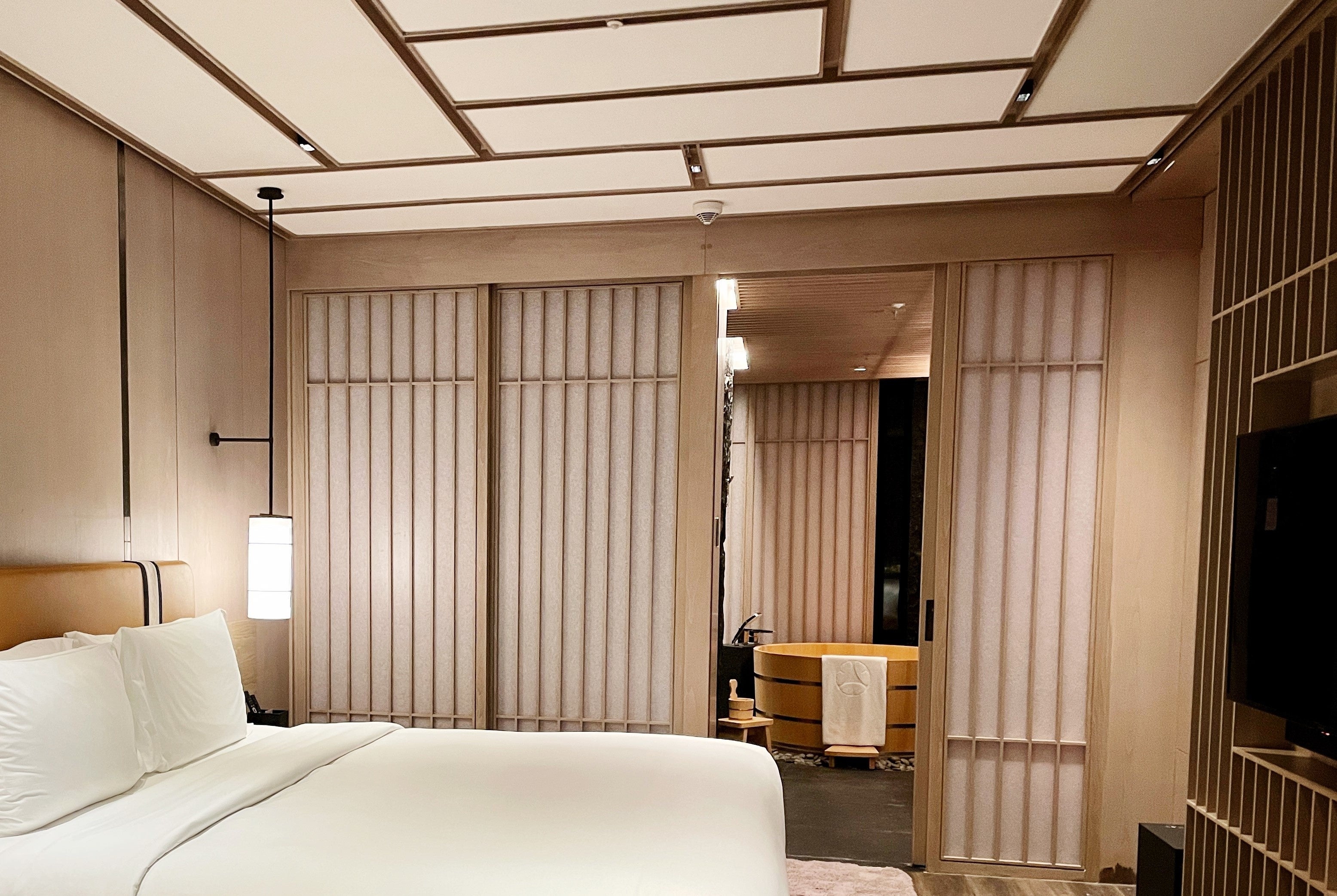 一日目は首都マニラへ。インフルエンサーたちは、ニノイ・アキノ国際空港ターミナル3に到着後、隣接するリゾート・ワールド・マニラ内にあるホテルオークラマニラに宿泊しました。2021年12月に新しくオープンした日系のホテルで、日本建築に着想を得たというロビーは木材を取り入れた装飾が施され、モダンで落ち着いた空間を演出しています。