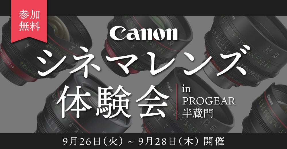 本イベントでは、キヤノン製単焦点シネマレンズのEF PRIME (EFマウント)とSumire Prime (PLマウント)シリーズを多数展示。実際に触ってお試しいただける体験会です。会期中はキヤノン担当者が常駐し、製品について分かりやすくご案内します。