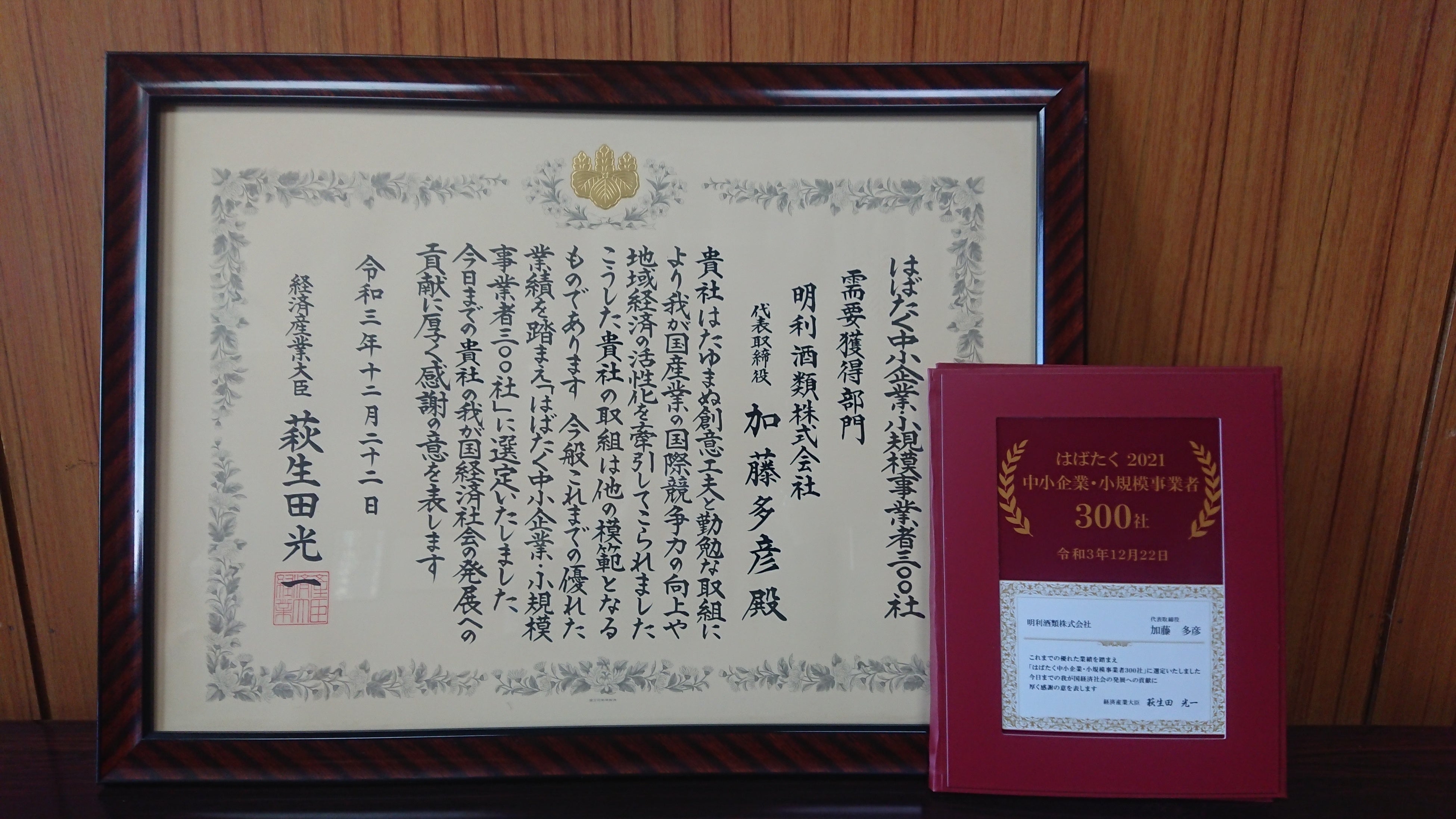 明利酒類が2021年度の「はばたく中小企業・小規模事業者300社」を受賞!!