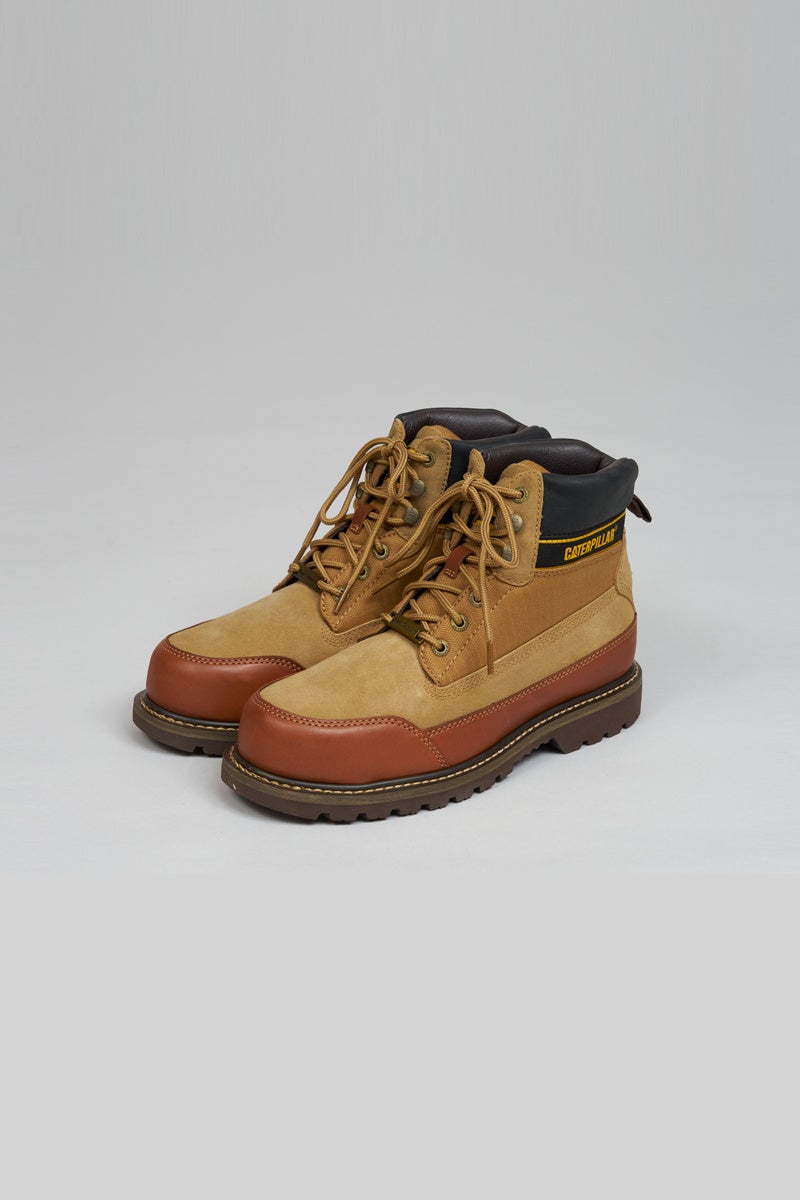 オーセンティック、そしてインダストリアル・ヘリテージが本コラボレーションの根底にあります。我々はキャタピラーのアイコニックなワークブーツを基軸にして開発をしました。