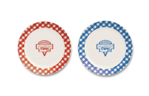 【マリオンクレープ 磁器プレート(赤・青) 各1,650円(税込)】