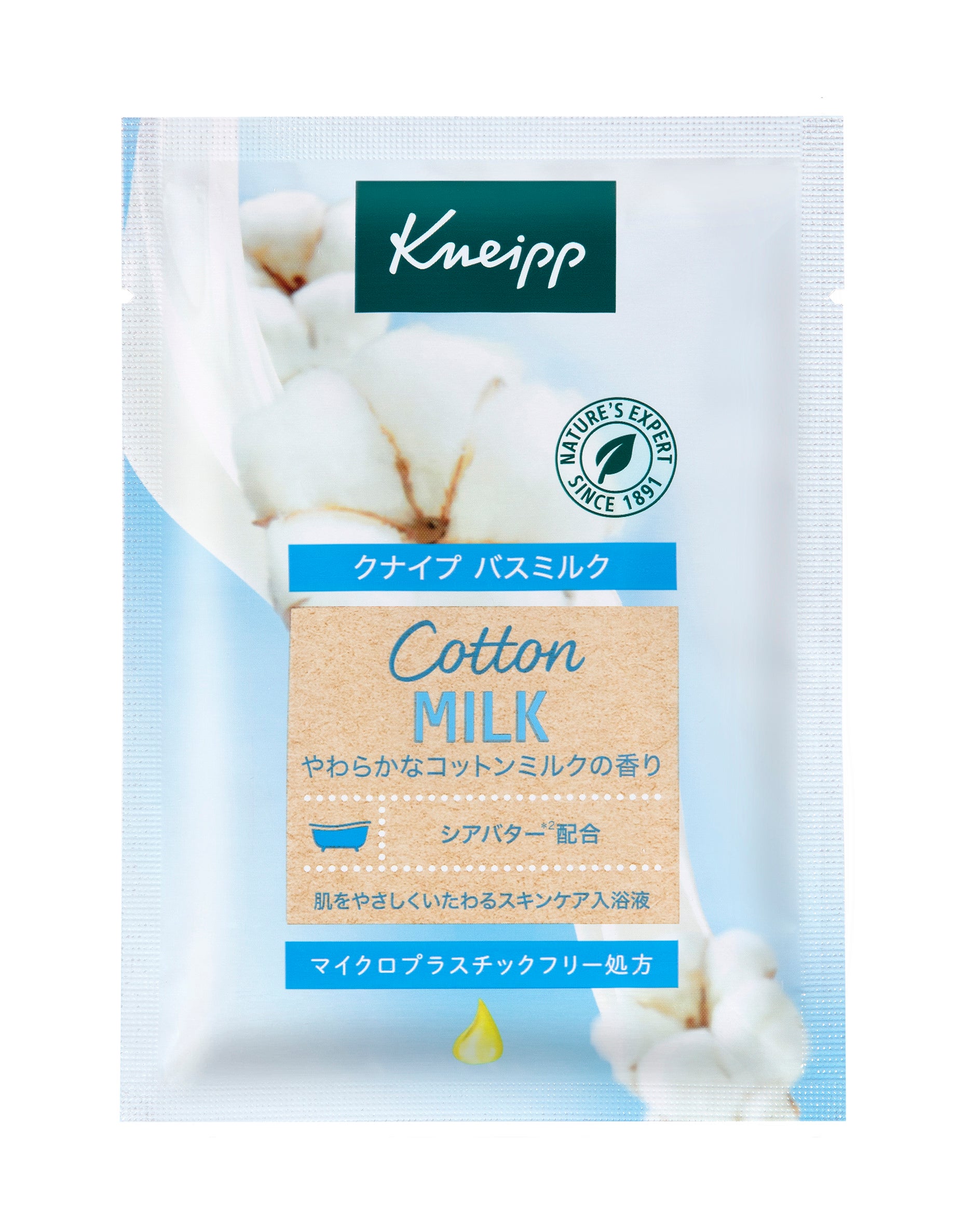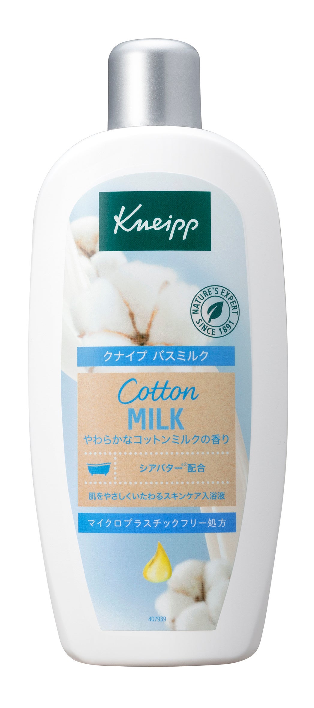 クナイプのバスミルクは、天然植物オイルやスキムミルク(保湿成分)を配合した、スキンケア発想の入浴料。