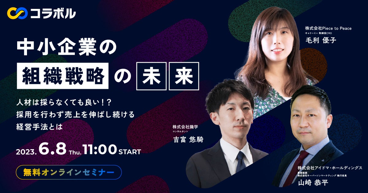 【6/8(木)11時〜開催】中小企業の組織戦略の未来 −人材は採らなくても良い!?採用を行わず売上を伸ばし続ける経営手法とは−