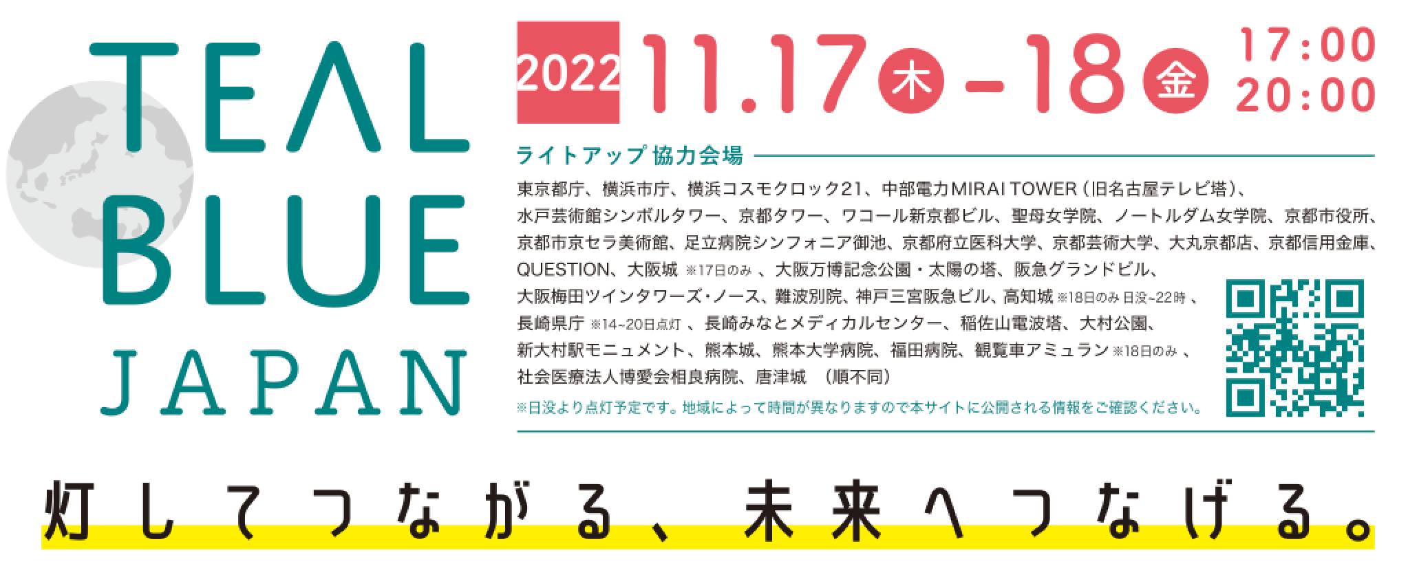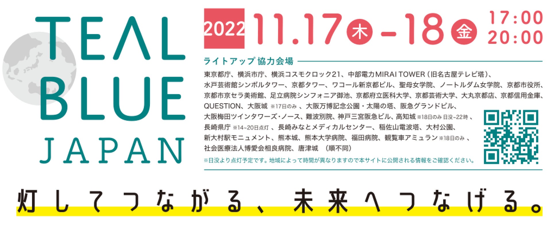 【本日開催!子宮頸がん予防啓発世界一斉ライトアップ】11月17日(木)18日(金)子宮頸がんから未来を守る、ティールブルーの光!Teal Blue Japan キャンペーン2022