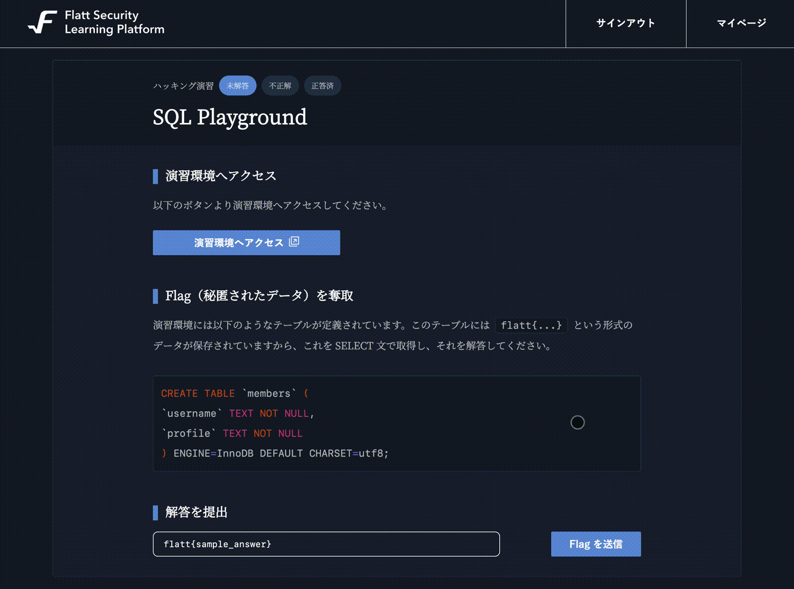 - Flatt Security Learning Platform:https://flatt.tech/learning_platform