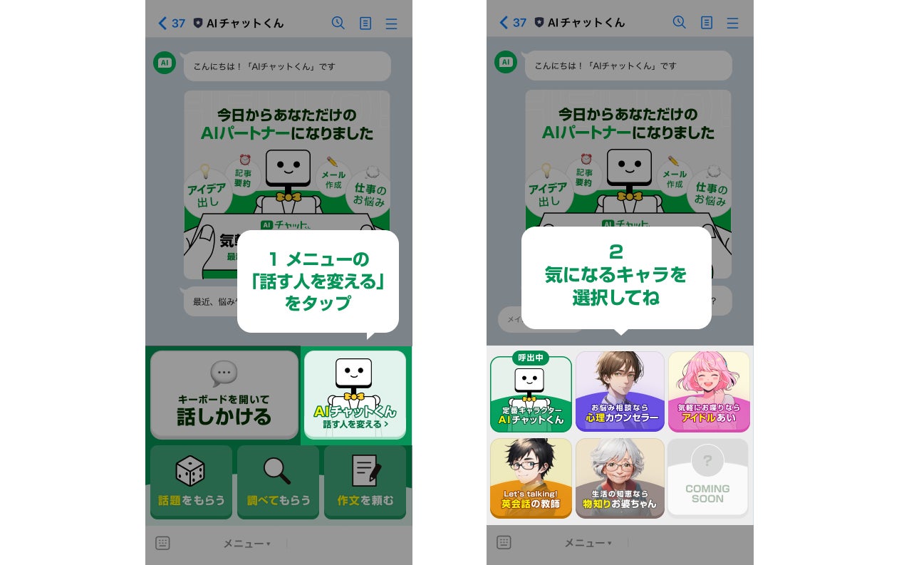 【色んなキャラに七変化?!】英語教師や心理カウンセラー、アイドルなど、話し相手を簡単に選べる新機能をLINEでChatGPTの「AIチャットくん」からリリース!