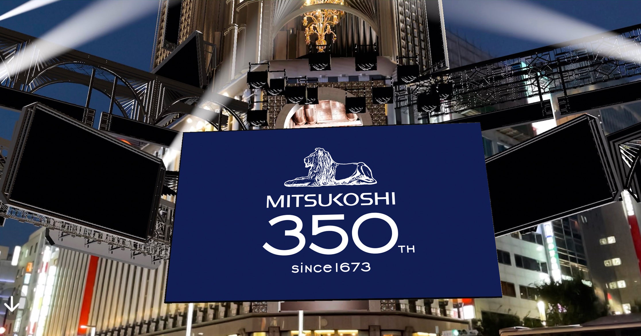 その一環でこのたび、三越銀座店は、国内外の高感度上質なお客様が来街される世界有数の街である銀座4丁目という立地を生かし、その資産である本館の銀座シャンデリアにおいて、グループのインハウスエージェンシーであるスタジオアルタとソニーグループの広告会社であるフロンテッジと協業し、同じくソニーグループのデジタルソリューション提供会社であるSoVeCが開発したXRを活用した広告メディアより新たなエンタテインメントスポットを開発いたしました。