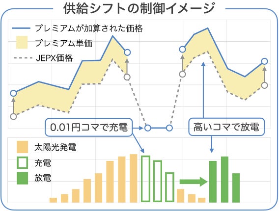 この問題を解決する方法の一つとして、蓄電池を併設し、0.01円となるコマでの発電分は蓄電池に充電を行い、価格の高いコマで放電することで売電収益の向上を図る「供給シフト」が注目されています。