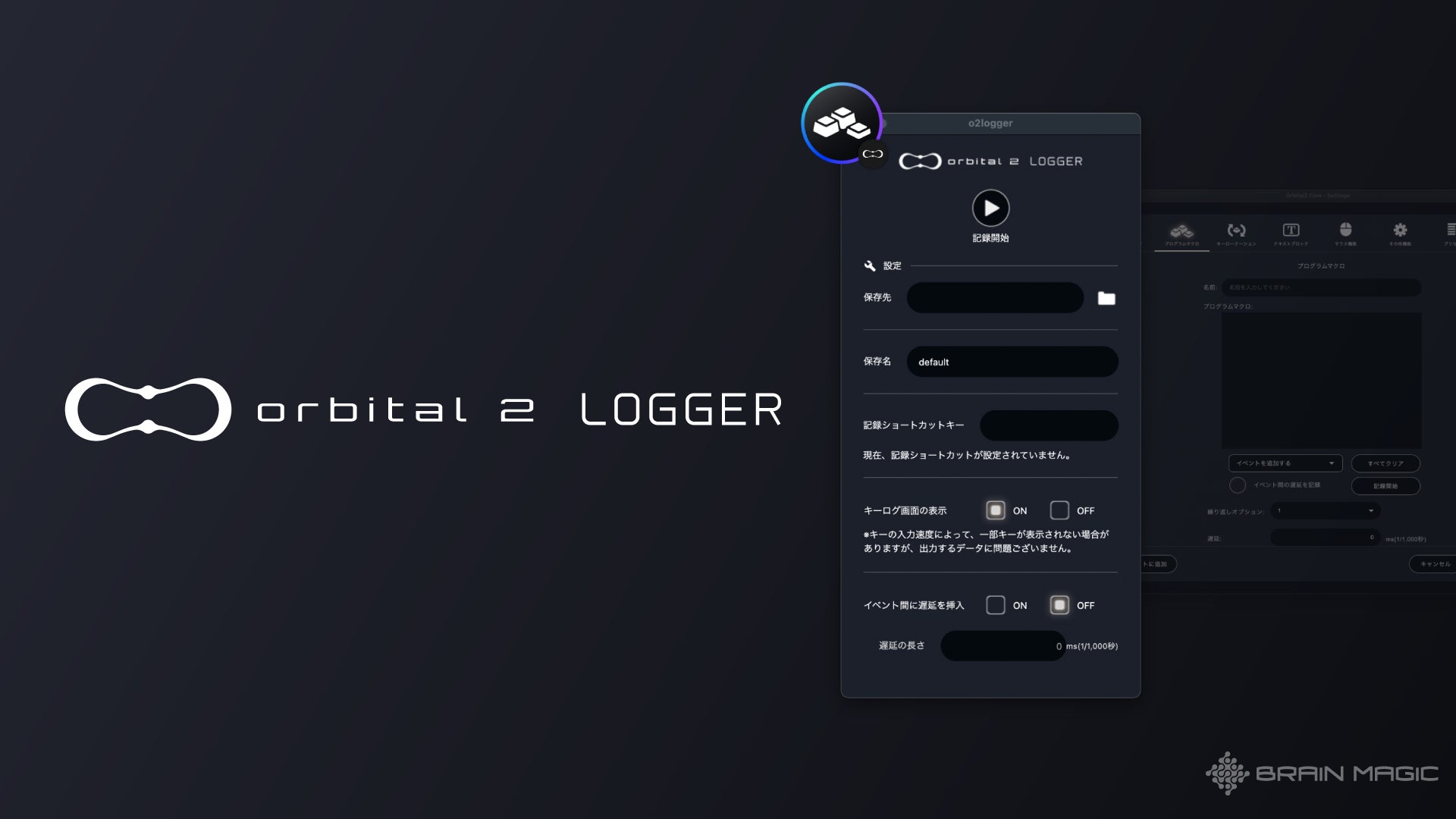 Orbital2 のプログラムマクロ機能にキーを登録する際に、「Orbital2 Logger」を利用することで、クリエイティブソフトを利用しながら、キーを順番に登録することができます。