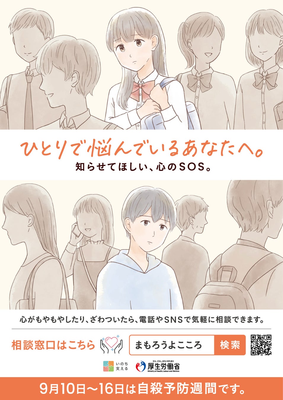 9⽉10⽇〜9月16⽇は⾃殺予防週間です。