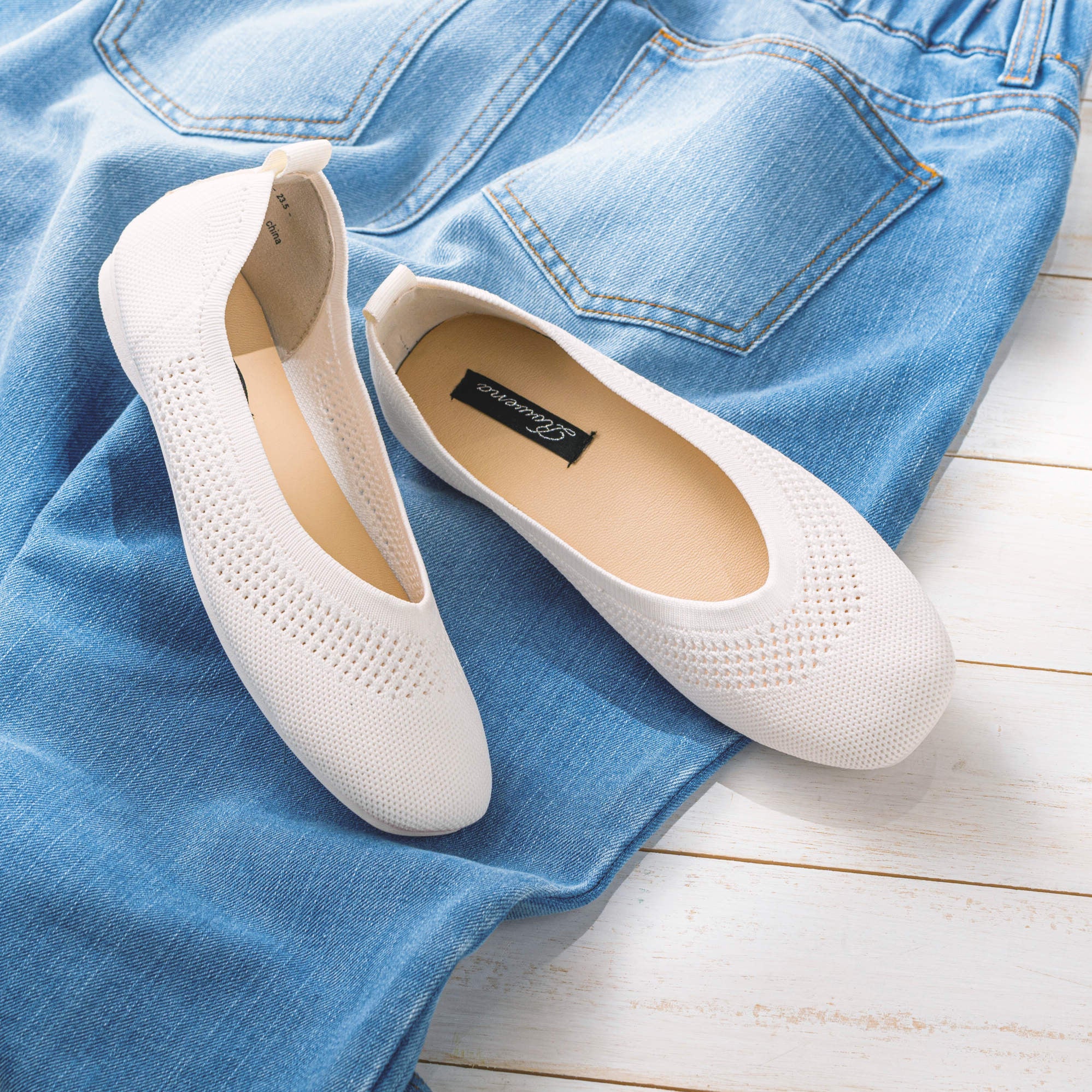 通気性の良いニット素材だから、暑い日も快適!超軽量設計の上、「ラク」と「女性らしさ」を両立させた履き心地のよいフラットシューズ。