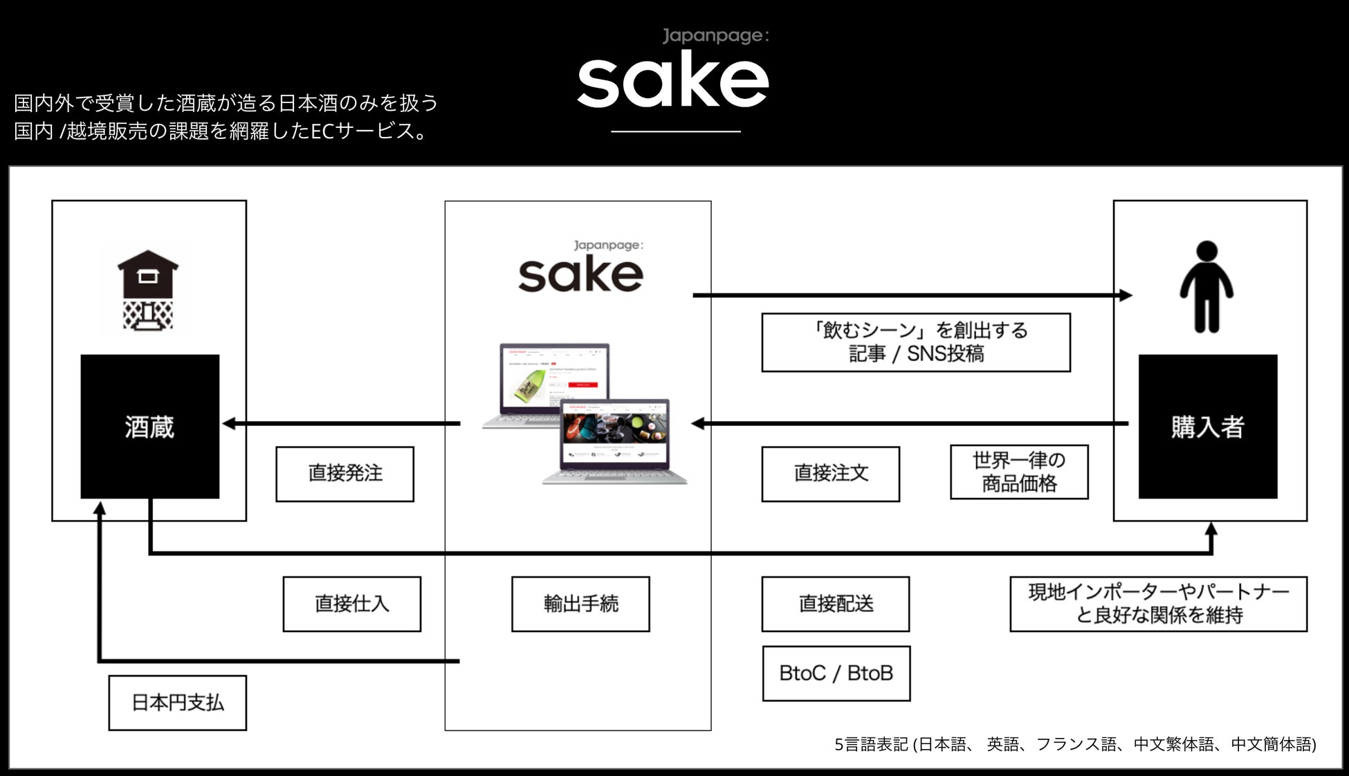 世界一律の商品価格で日本酒を1本から世界50カ国以上に輸送できる多言語対応の越境ECサイト「Japanpage:Sake」が1月31(火)にベータ版をオープン!