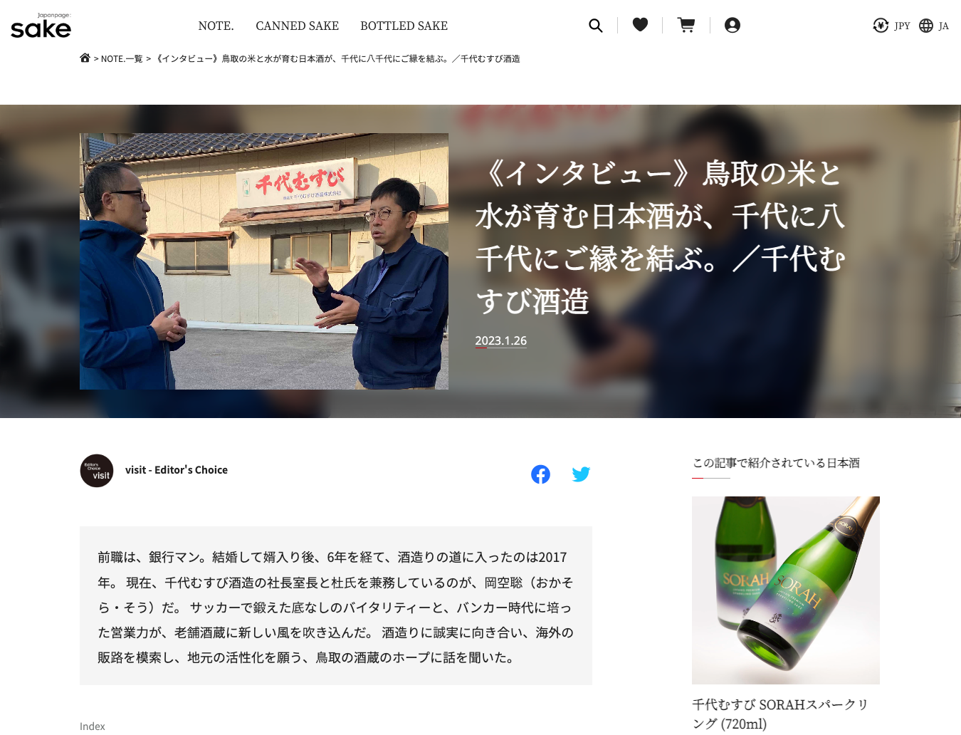 Japanpage:Sakeで取り扱う至高のお酒の造り手にインタビュー。国内外で評価を受けた酒蔵の醸す“地酒”のみを届けるECサイトとして、“作品”としての日本酒をより深くお楽しみいただくため、酒蔵のストーリーや哲学をお伝えします。