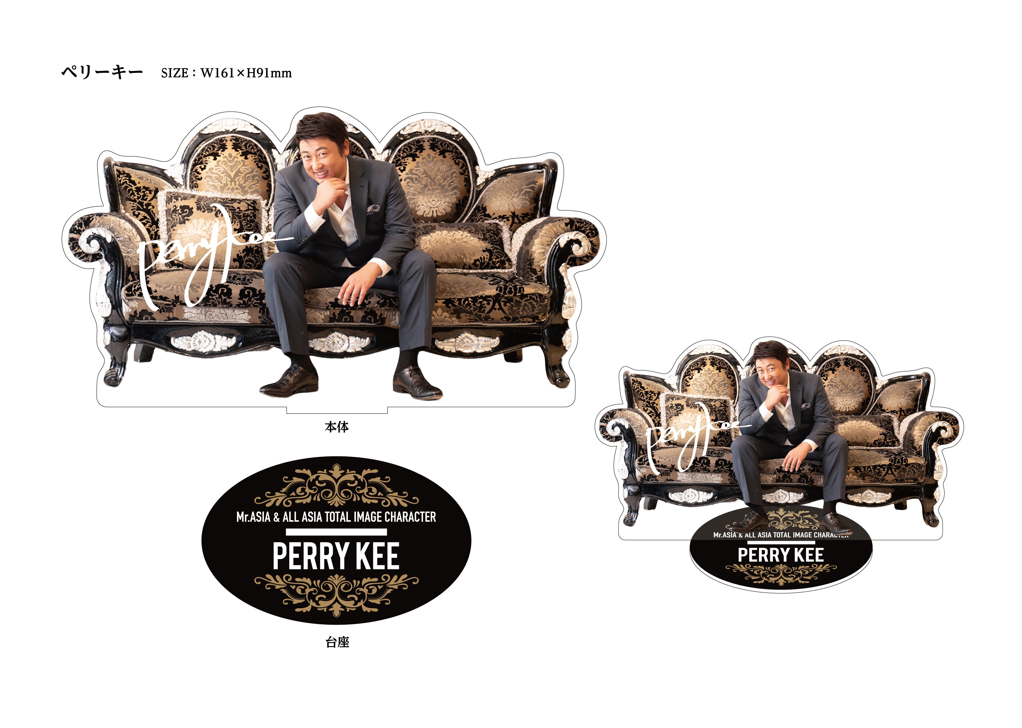今回、僕ペリー・キーのアクリルスタンドが出たんだ。なかなか全アジアの皆さまと会うチャンスはないけれど、少しだけでもペリー・キーの空気を感じて欲しいな。机の上、便所のタンクの上、あと車のエンブレムの上を外してこっちに切り替えたりして、僕を感じてくれ。全ファンの皆さま愛しています。