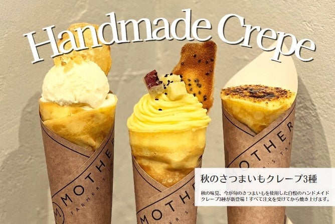 『FARMER’S TABLE MOTHER (ファーマーズテーブル マザー) 』にて人気のハンドメイドクレープに新作が登場!密芋の王様“紅はるか”を楽しむ「秋のさつまいもクレープ3種」販売開始