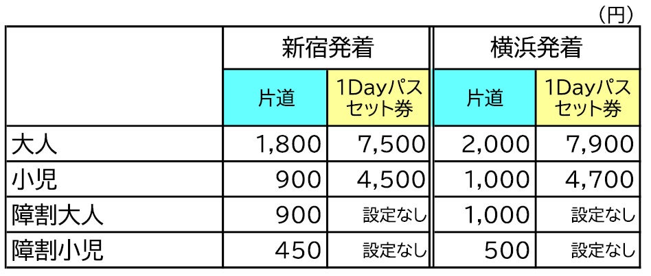 ※1Dayパスセット券=高速バス往復乗車券+東京サマーランド1Dayパスのセット