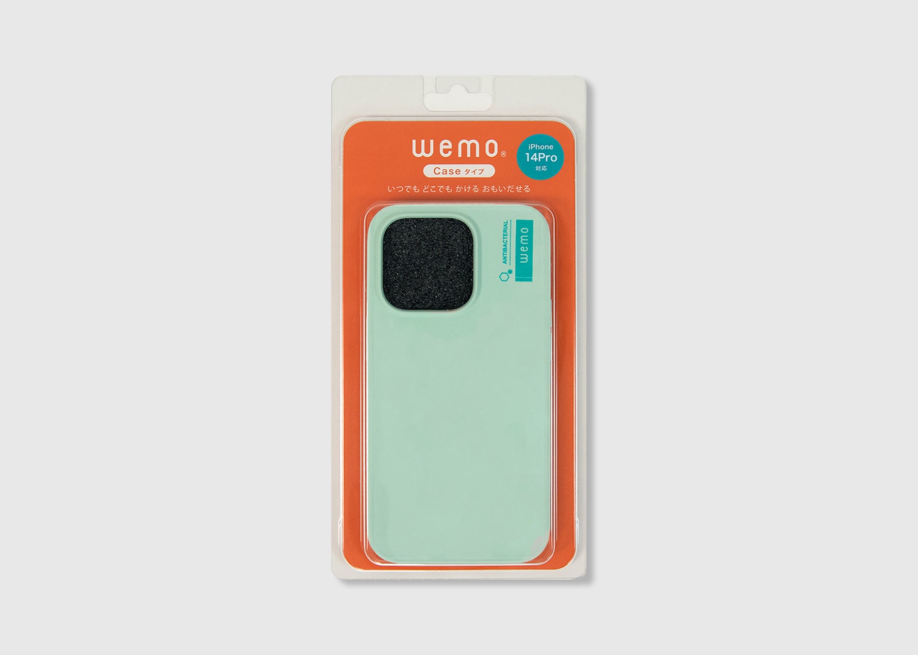 wemoケースタイプは今回発売のiPhone 14/14 Pro用のほか、iPhone7/8/SE2、X/XS、11Pro、12/12 Pro、iPhone 13/13 Pro用の各種を取り揃えています(抗菌仕様はiPhone 13/13Pro、14/14Pro用のみ)。
