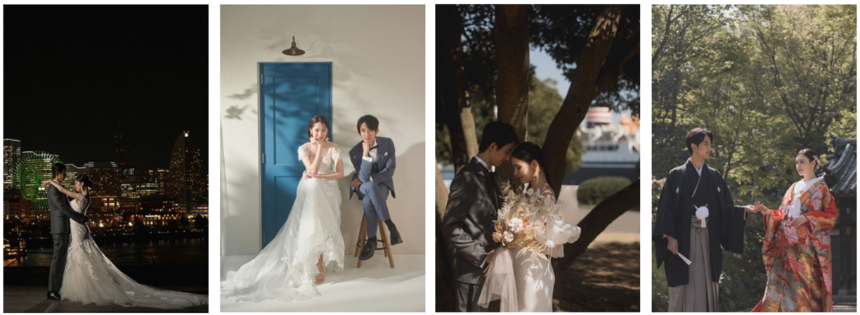 ウエディングドレスのトップメーカーであるクラウディアグループが運営するフォトスタジオだからこそ、結婚式で実際に花嫁が着用する衣裳と同じブランドドレスや和装を取り揃えております。Irida maison/Lulu felice/K.RANNE/Myth Mock Moon など、お洒落な花嫁に支持される人気ブランドの最旬コレクションをはじめ、スイートやモード、シンプル、オーセンティックなスタイル、カラードレスなどバリエーション豊富でハイクオリティなラインナップをご提供いたします。また、スタジオでの撮影はもちろん、横浜らしさ溢れるロケーションフォトもご提案いたします。