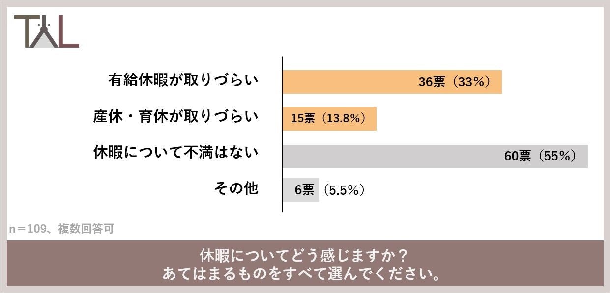 ・休暇に関して3人に1人が、有給休暇が取りづらいと回答。フリーアンサーでは、慶弔休暇すら取れないという不満の声も