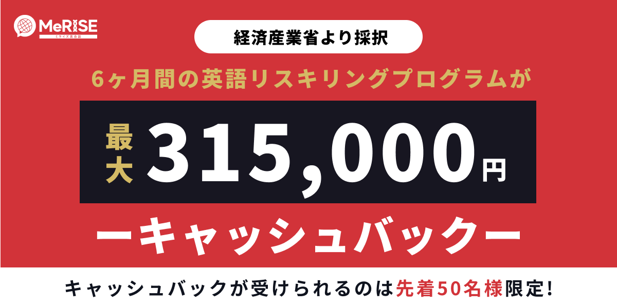 英語リスキリングプログラムの詳細に関してはこちらから:https://eikaiwa.merise.asia/lp/reskilling-01/