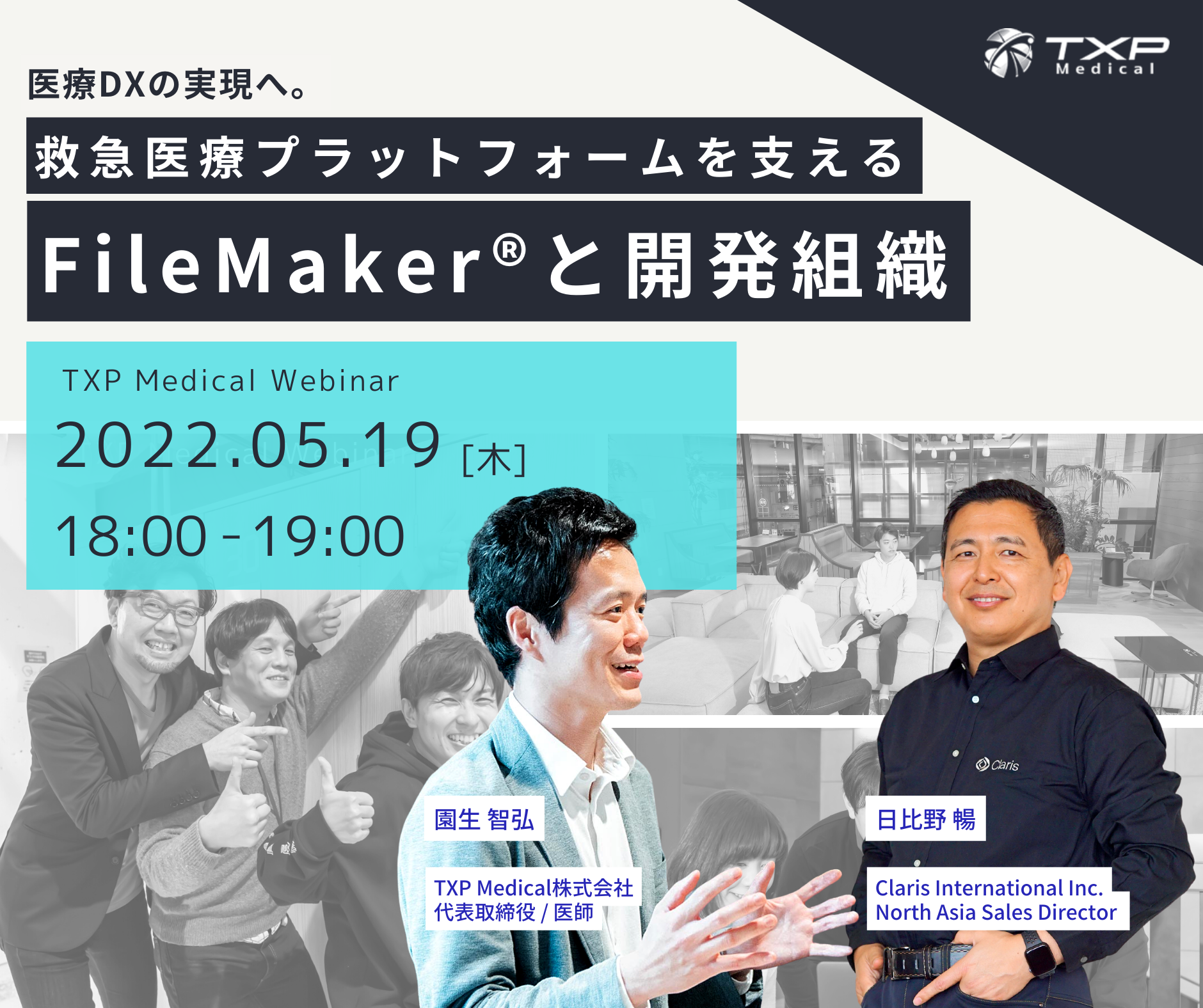 本ウェビナーでは、Claris International Inc.の日比野氏をゲストに招き、なぜ、TXP Medicalがパッケージソフトウェアの開発基盤としてFileMaker®を選んだのか、医療DXを実現するための開発方法や開発組織について、また、FileMaker®活用の先進事例など、進化を続けるプロダクト開発の裏側についてディスカッションをします。