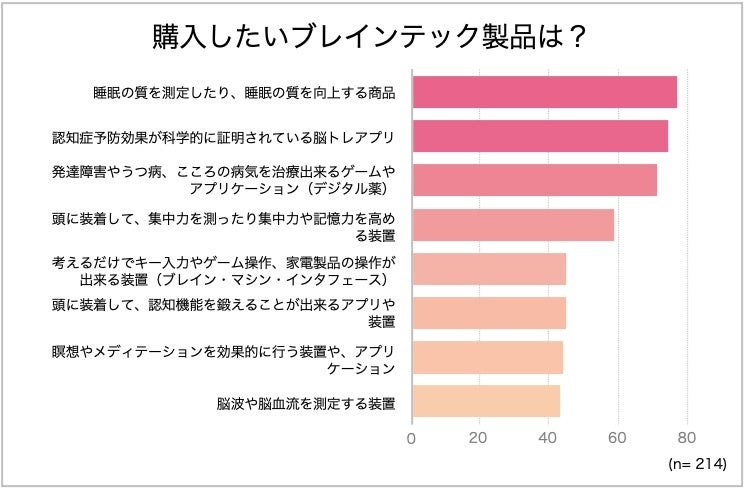 - 購入したいブレインテック製品は睡眠、脳トレ、デジタル薬が上位