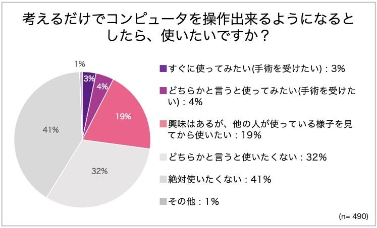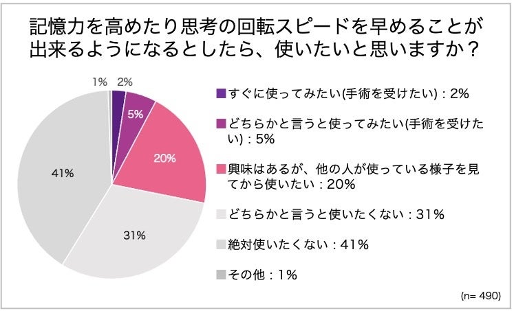 仮に、レーシック手術と同じくらい安全に日帰りで脳に電極を埋め込むことが可能になった場合に、使ってみたいのかを聞いてみました。