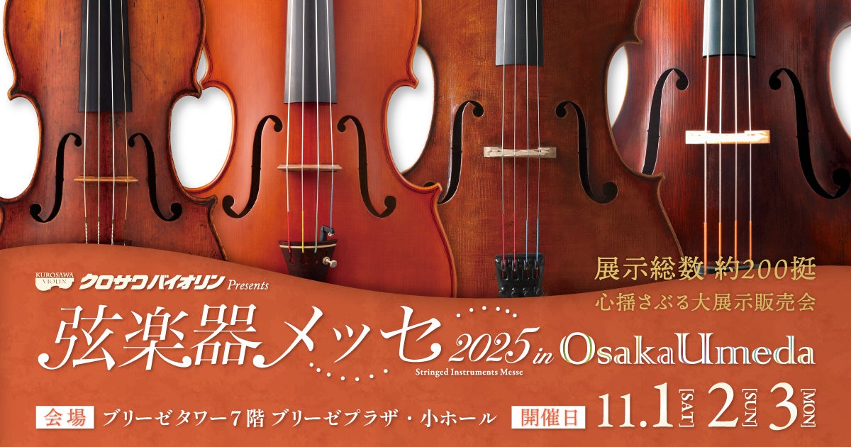 弦楽器専門店のクロサワバイオリンでは11月1日からの3日間、大阪・梅田にて約200挺の弦楽器を一堂に展示販売するイベント「弦楽器メッセ in大阪梅田」を開催。