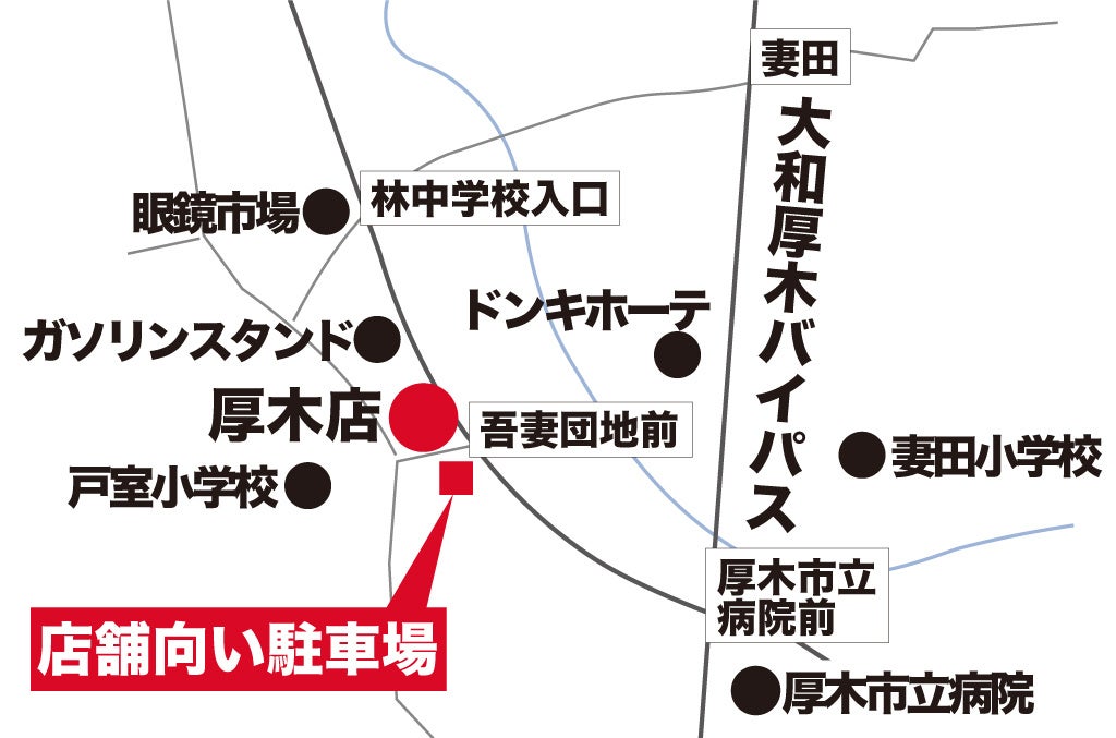 【アクセス】: 小田急線本厚木駅より車で10分(国道412号 吾妻団地前の信号左折)