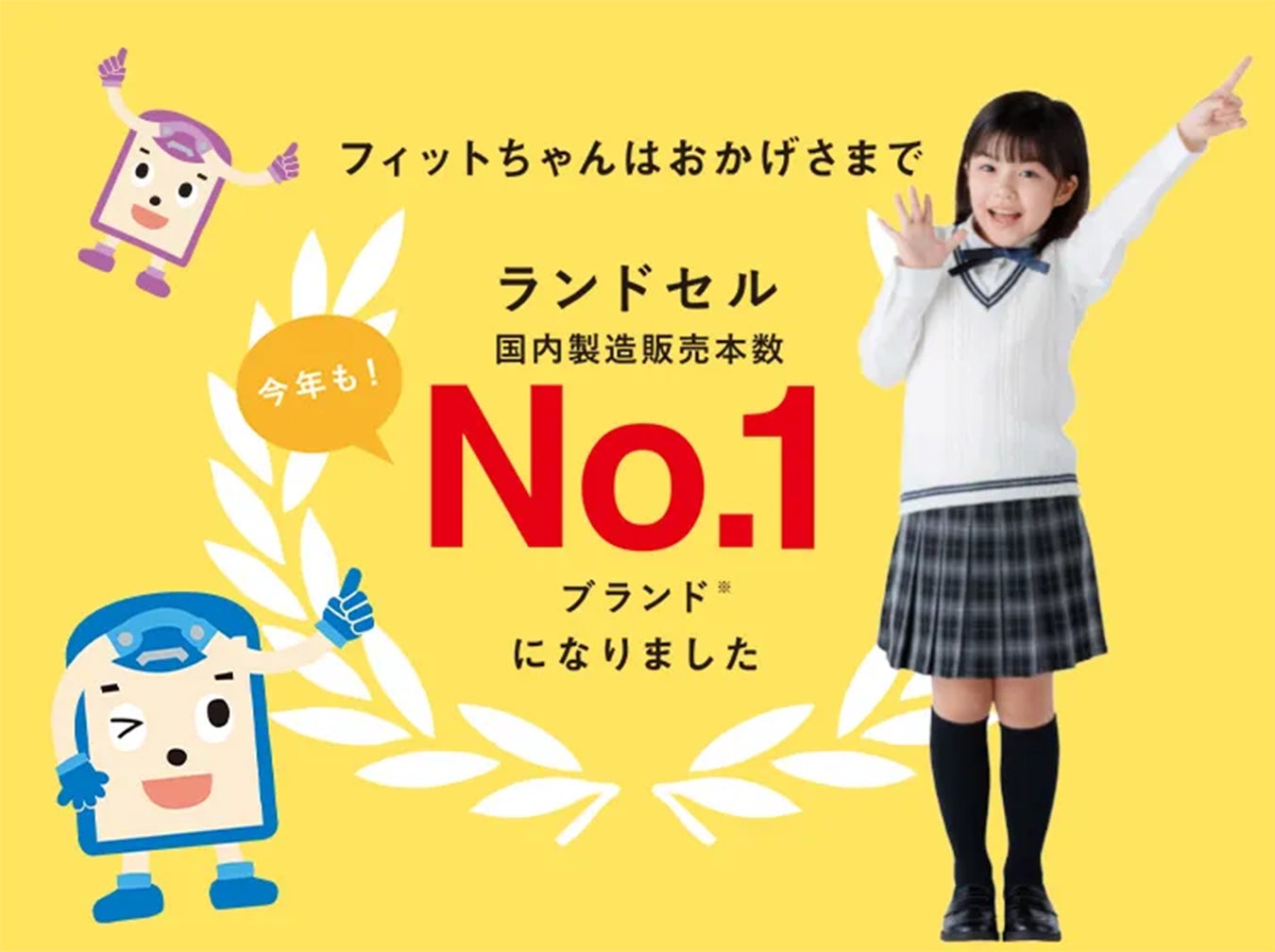 機能性と安全性を追求するランドセル、そして思い出に残るランドセル選びの取り組みが好評を頂き、「フィットちゃん」は今年もランドセル国内製造販売本数でNo.1※ブランドになりました。