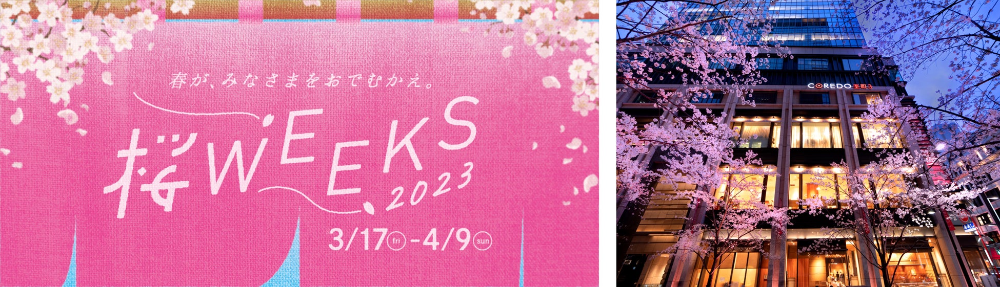 毎年恒例の日本橋エリア春の風物詩『SAKURA FES NIHONBASHI 2023』の開催に合わせて、COREDO室町では桜にちなんだアイテムやメニュー展開等、『SAKURA FES NIHONBASHI 2023』を盛り上げる「桜WEEKS 2023」を開催します。