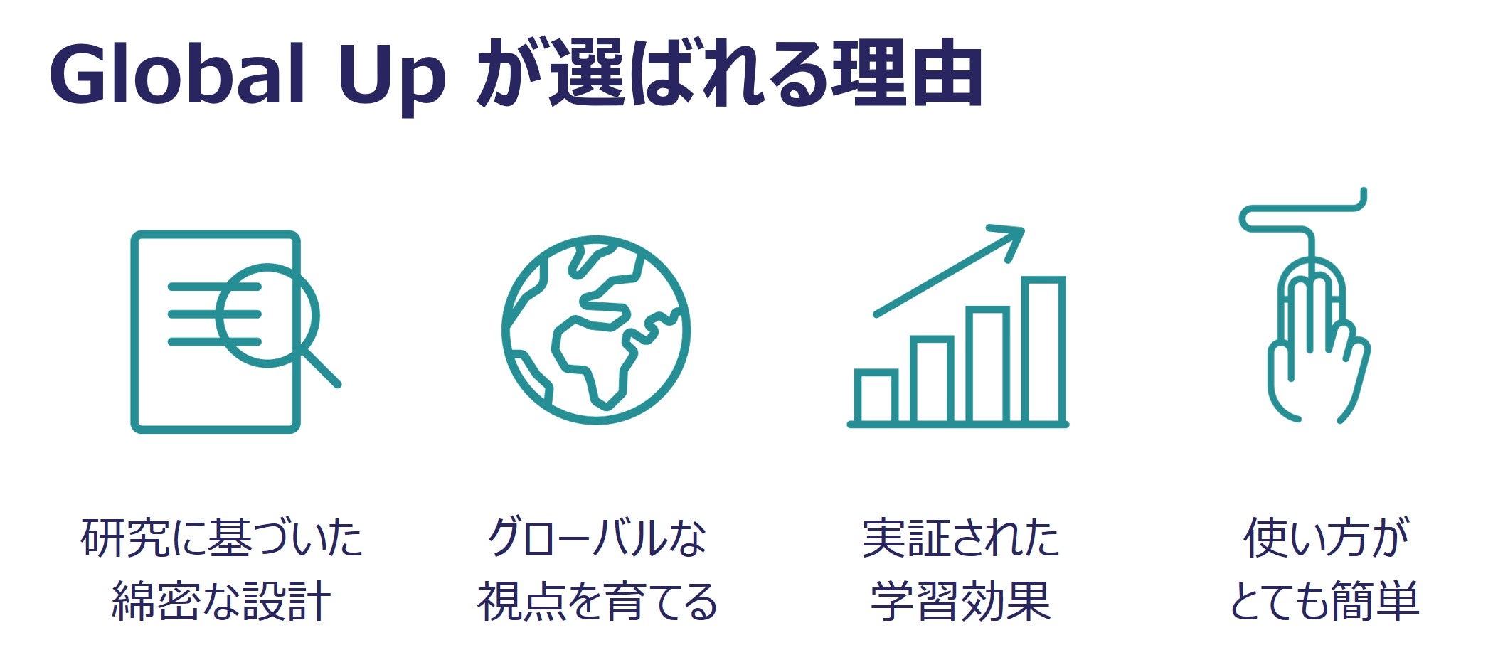 10代を対象とした「Global Up Teen」日本語版の提供開始により、日本の学校でも導入いただきやすくなりました。