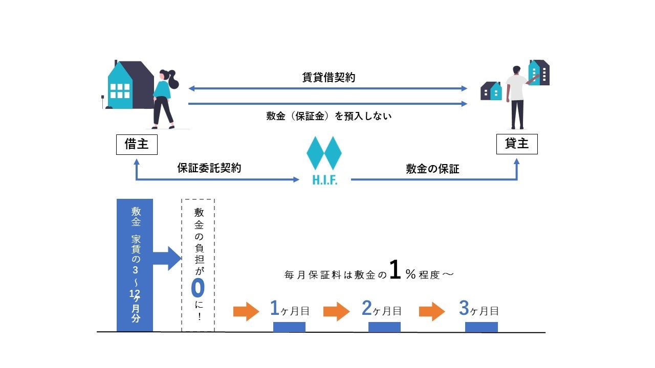 入居者が負担する敷金をH.I.F.が保証いたします。