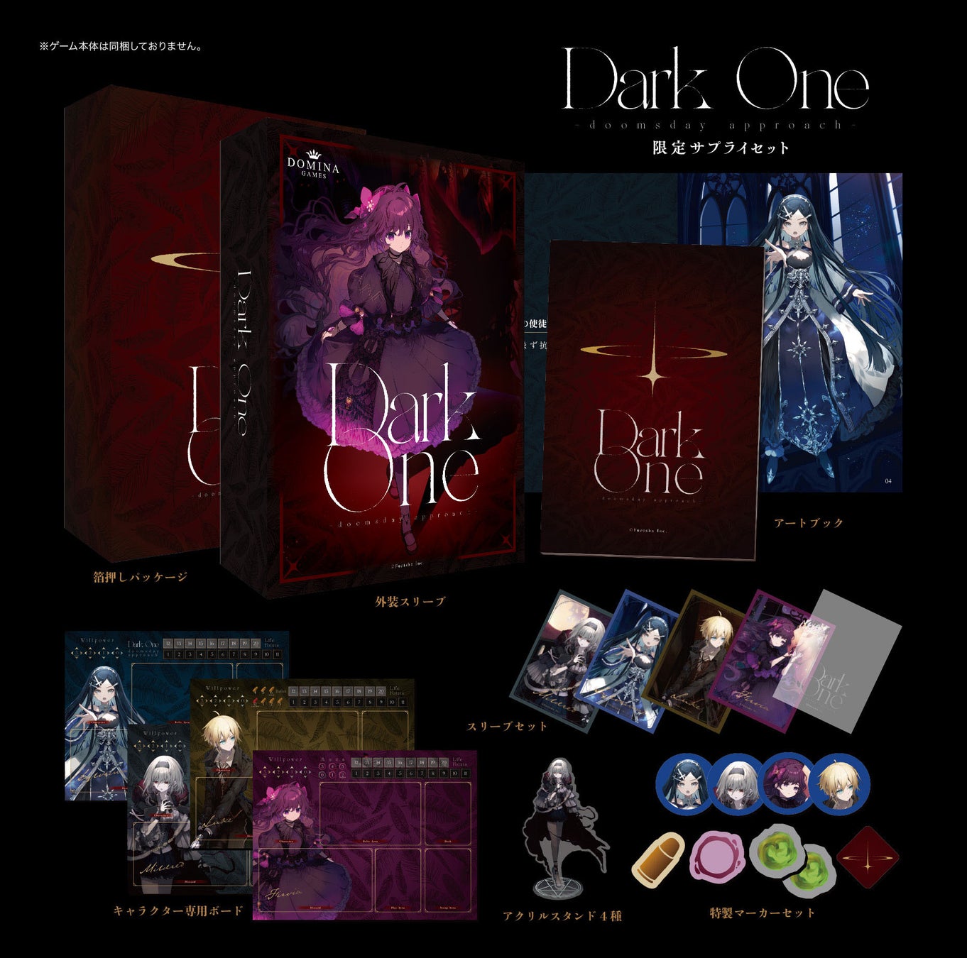 「Dark One」の世界をより深く味わうことが出来るサプライセットのご予約を公式サイト、及びイエローサブマリンにて12/24(日)までの期間限定で受け付けております。盤上を豪華に彩る様々なアイテムを豪華箔押し&UV加工のパッケージに封入。「Dark One」本体も収納可能です。