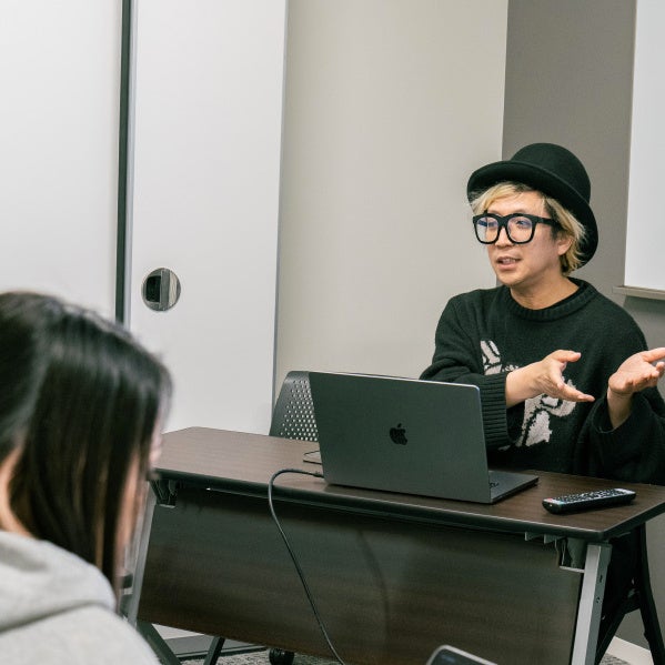 通常の講義に加え、特別講師としてプロのクリエイターの方々を招いた特別授業&交流会も開催し、専門性だけではなく、広くカルチャーを学べる機会を作っています。