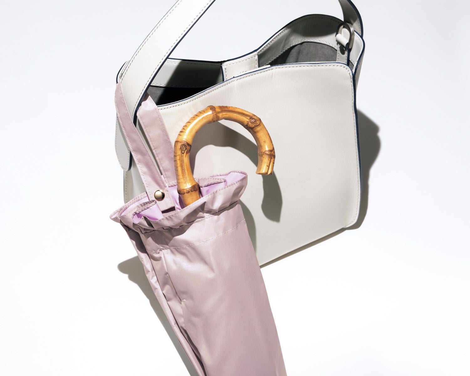 ・専用傘袋は、幅広設計でしまいやすく、バッグにもつけられる仕様