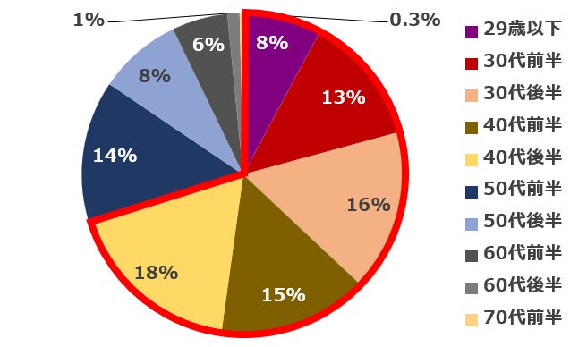 不動産投資というと比較的高齢の方や富裕層が行っているというイメージがあるかもしれませんが、アンケートによると20代~40代が70%、50代が22%と9割以上が現役世代です。不動産投資は高齢の方だけが行える投資ではない事が分かります。