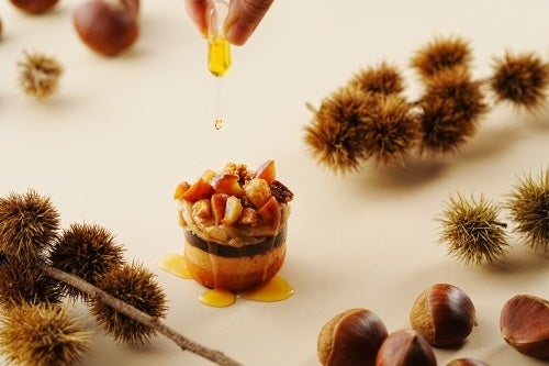 ドロッパーの渋皮煮シロップをかけることでふんわりと香る栗に秋を感じていただけます。