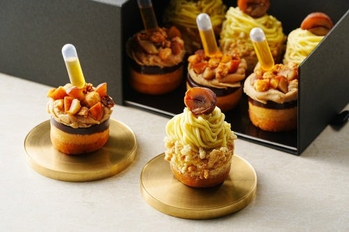 栗の渋皮煮、キャラメリゼしたマカダミアナッツとクランブルをのせ、丹波産栗を贅沢に使用した濃厚な甘さの特製モンブランクリーム、栗と相性のよいキャラメルとチョコレートの2層のムースで仕上げた至福のひとときを楽しめるドーナツです。