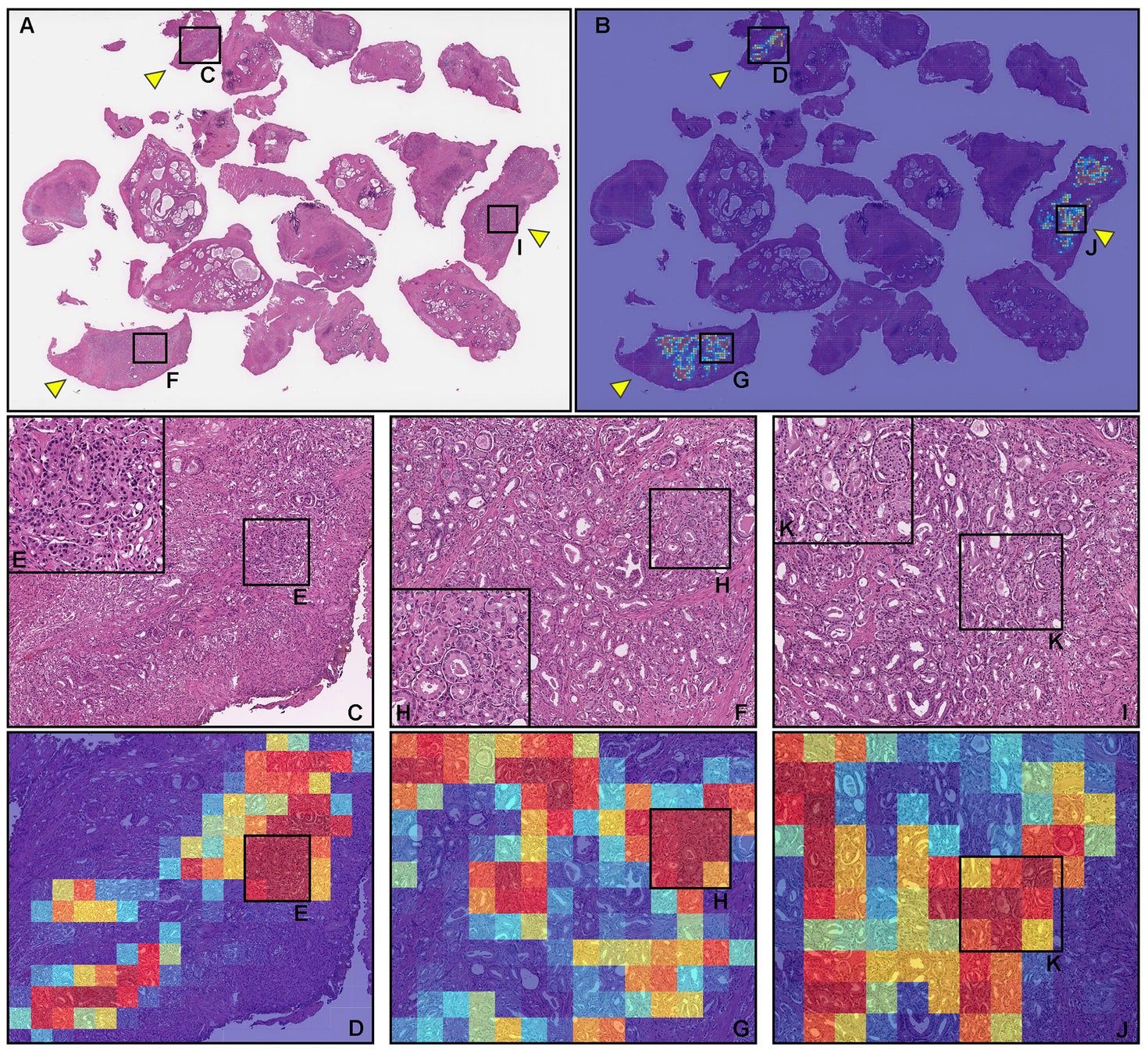前立腺癌に関しては、2022年に針生検病理組織デジタル標本における腺癌の検出を可能にする人工知能の開発に成功しましたが(文献:Diagnostics, 12: 768, 2022)、経尿道的前立腺切除術検体では精度が劣る結果となっていました(ROC-AUC:0.74 ~ 0.91)。