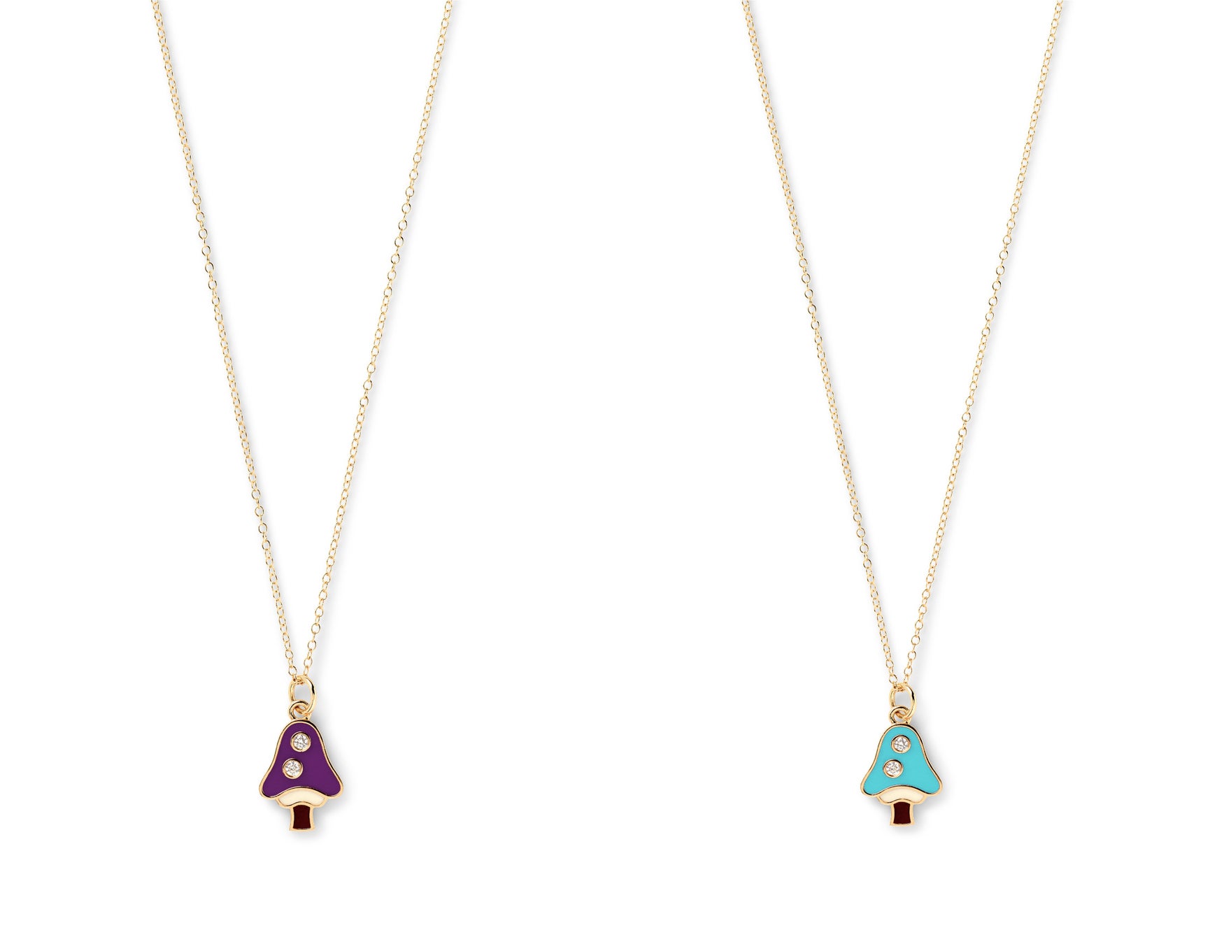 "Magic Shroom Necklace" 14Kイエローゴールド、エナメル、ダイヤモンド