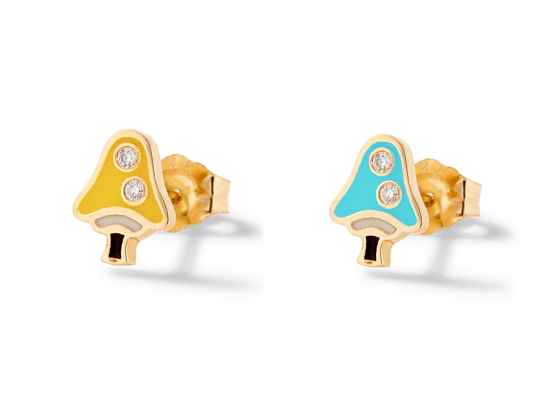 "Magic Shroom Stud" 14Kイエローゴールド、エナメル、ダイヤモンド