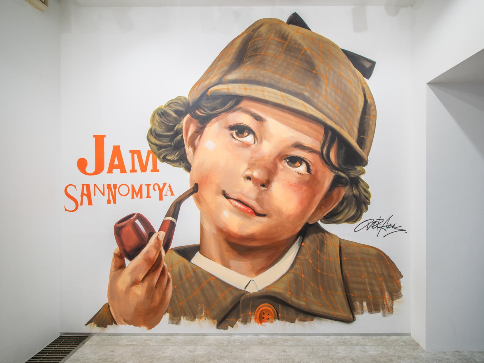そして今回、JAM横浜店に描かれた壁画は、記念すべき10作目となる「うちの子」。これまでの作品とは一線を画す、新しいイメージに挑戦した作品を制作しました。