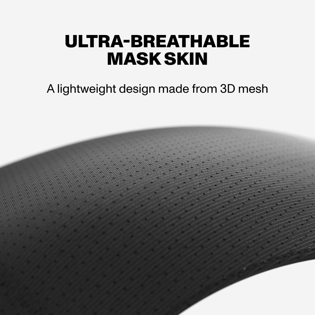 マスクスキンの表地には3D構造のメッシュを採用。人間工学に基づいた立体設計で呼吸がしやすく、軽量で快適な着用感を実現しました。