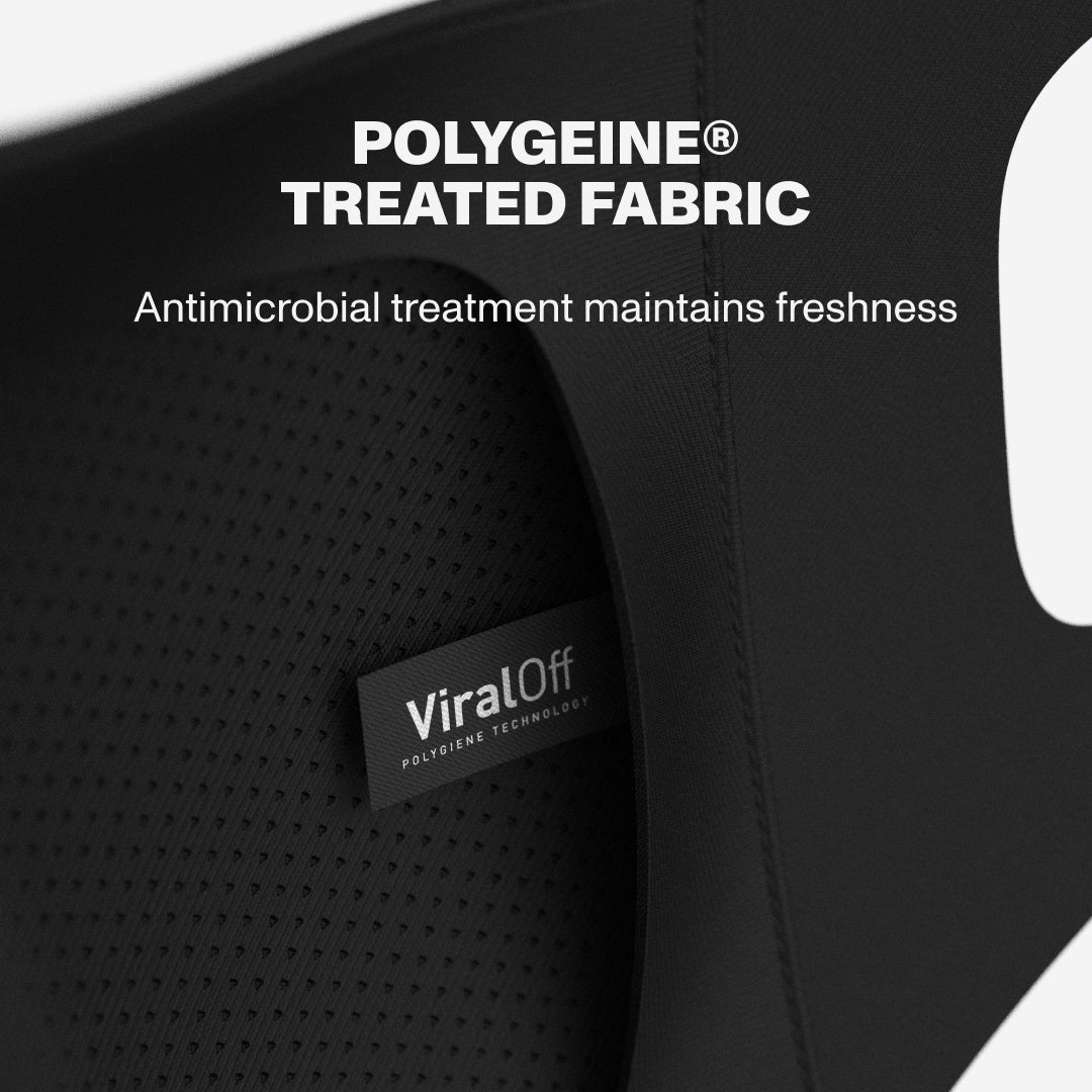 マスクスキンには、抗ウィルス・抗菌防臭のPolygiene ViralOff™ (ポリジン・バイラルオフ)加工が施されています。