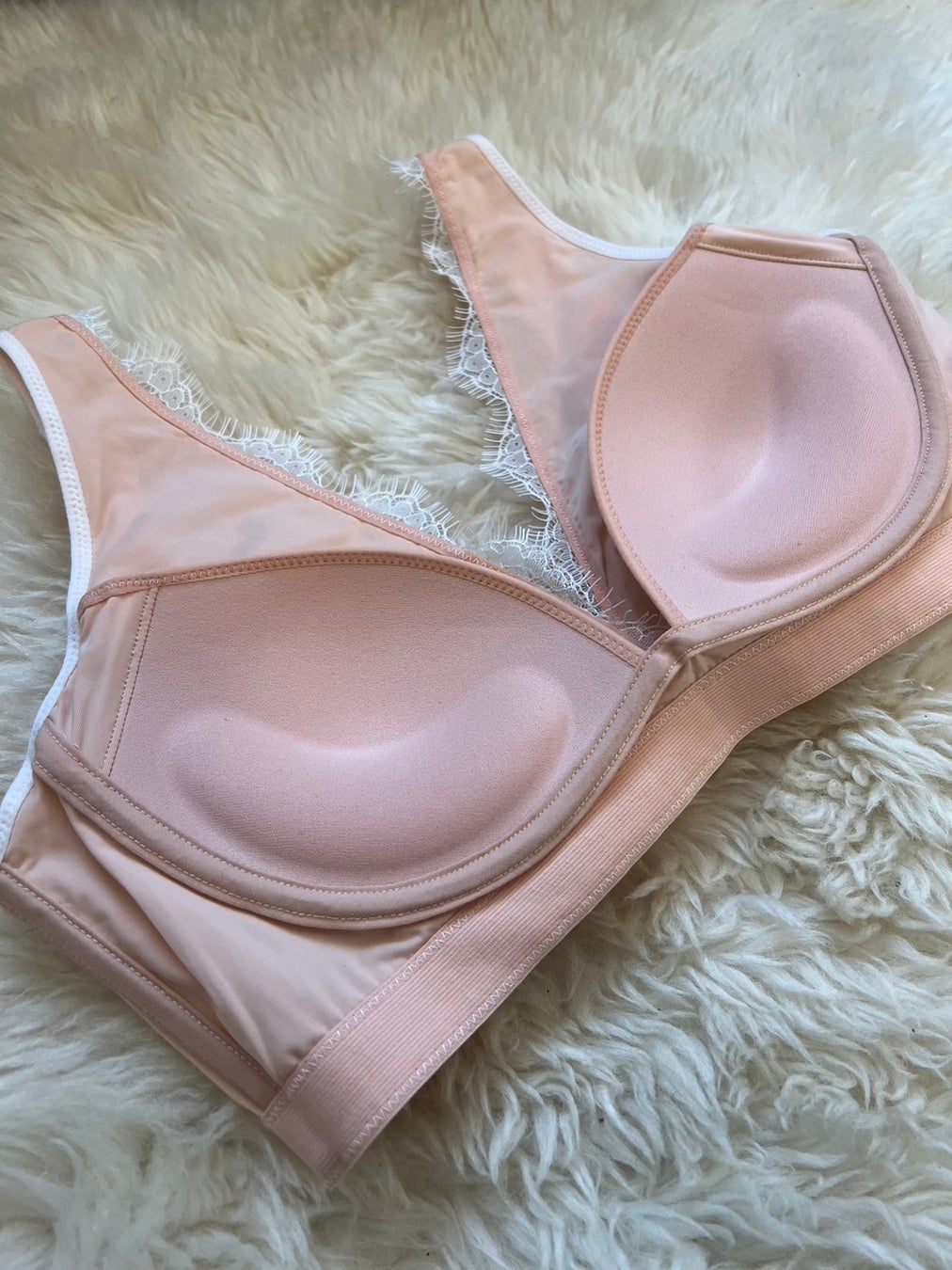 ノンワイヤー&ノンホック。24時間つけていられる着心地を追求。セクシーなリバーレースに伸縮性の高いストレッチ素材をミック スし寝返りも快適に。バックスタイルにもこだわり大胆に背中を深くカット。服装を選ばない美背中設計に仕上げこれまでのナイトブラにはないようなオシャレなデザインに。