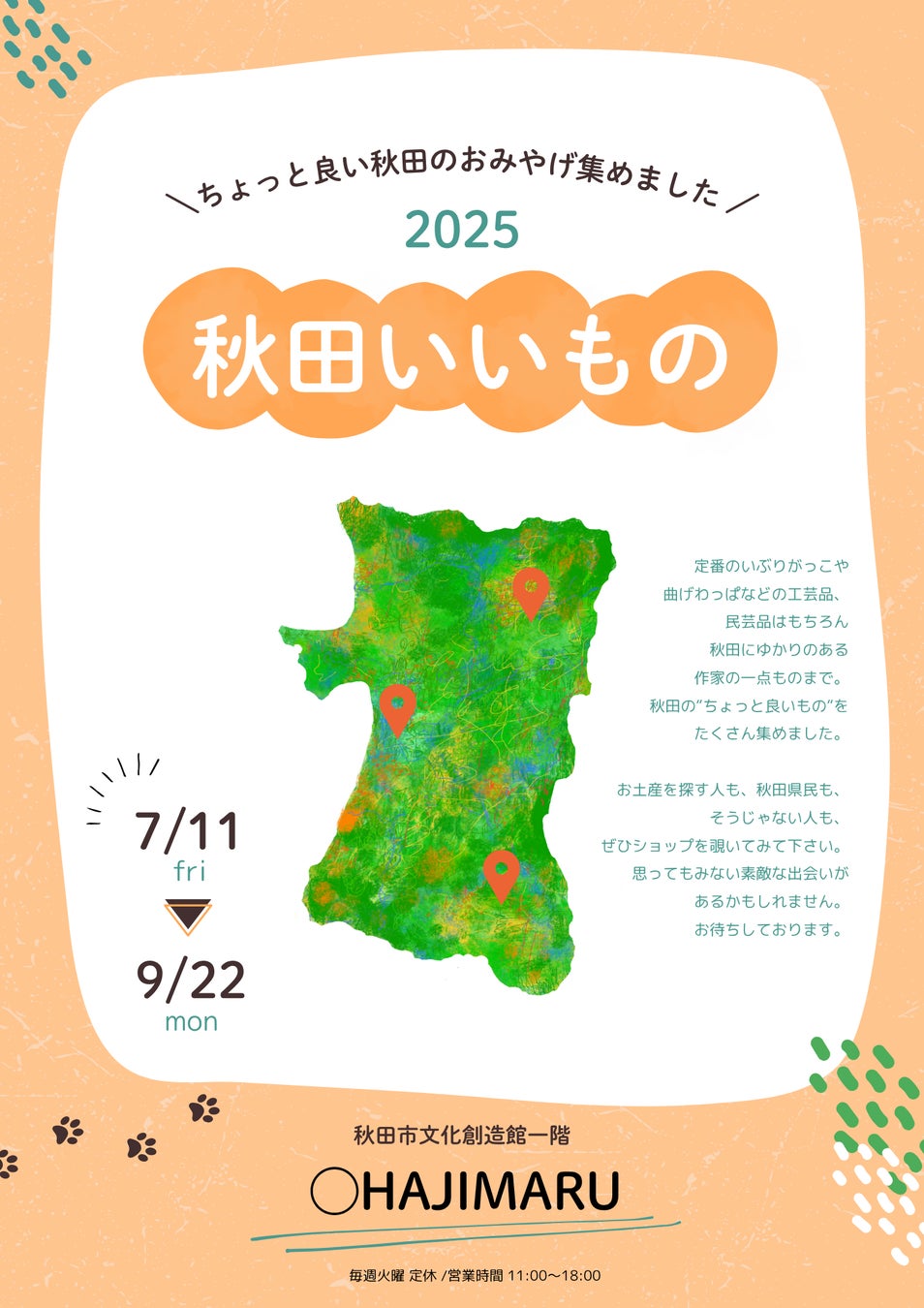 秋田市文化創造館1階にあるショップ「〇HAJIMARU(ハジマル)」は、手に取ると、そのものが生まれた場所の風土や、つくり手の思いが伝わってくる、そんな商品を集めています。昨年から、観光シーズンにあわせて、7月から9月にかけて秋田の”ちょっと良いもの”を集めたフェアを開催しています。