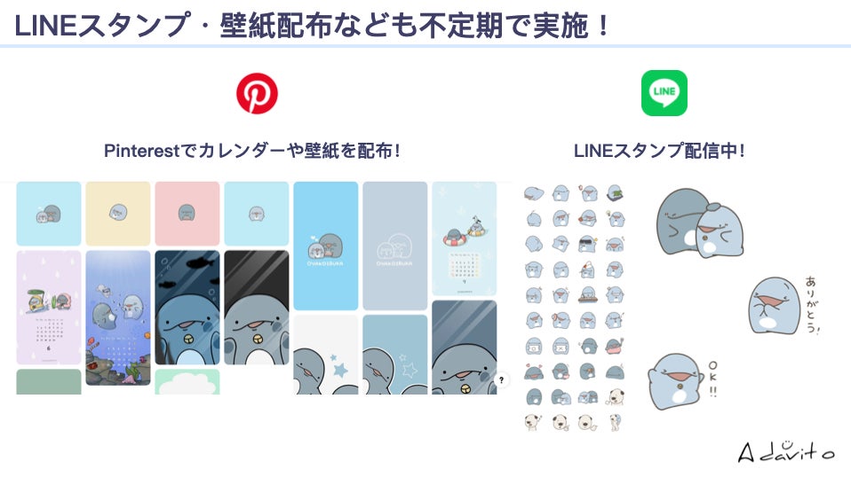 また、LINEスタンプや壁紙などデジタルコンテンツなども展開しており、オンライン・オフラインでファンの方々により親子イルカを楽しんでいただける企画を行っております。