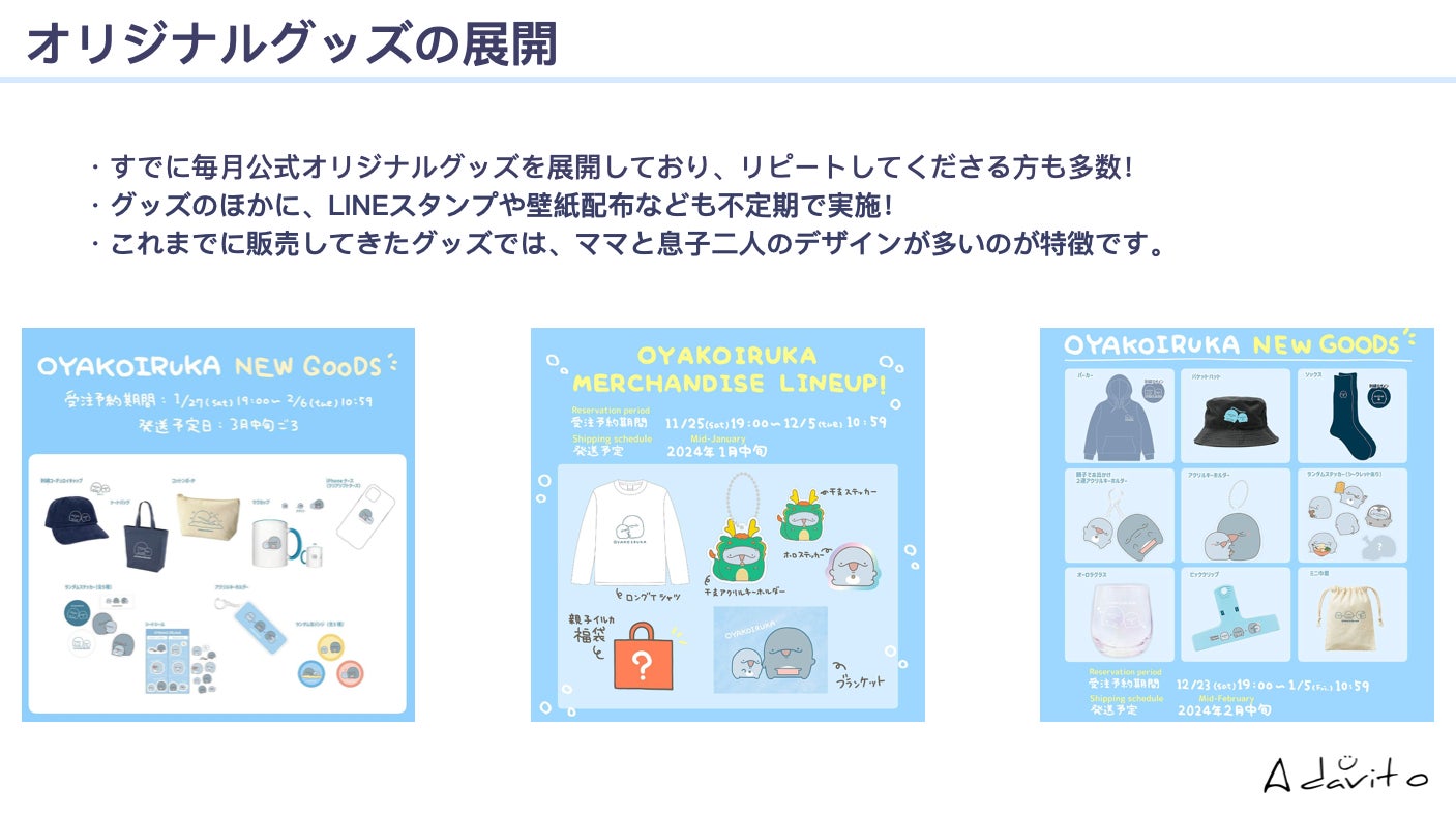 また、引き続き親子イルカとしてSNSでの活動を行っていきながら、自社企画としてグッズ展開の強化やPOPUPストアの実施、中長期での海外展開などファンの方々に喜んでいただけることを第一に考え、今後も活動を続けていきます。